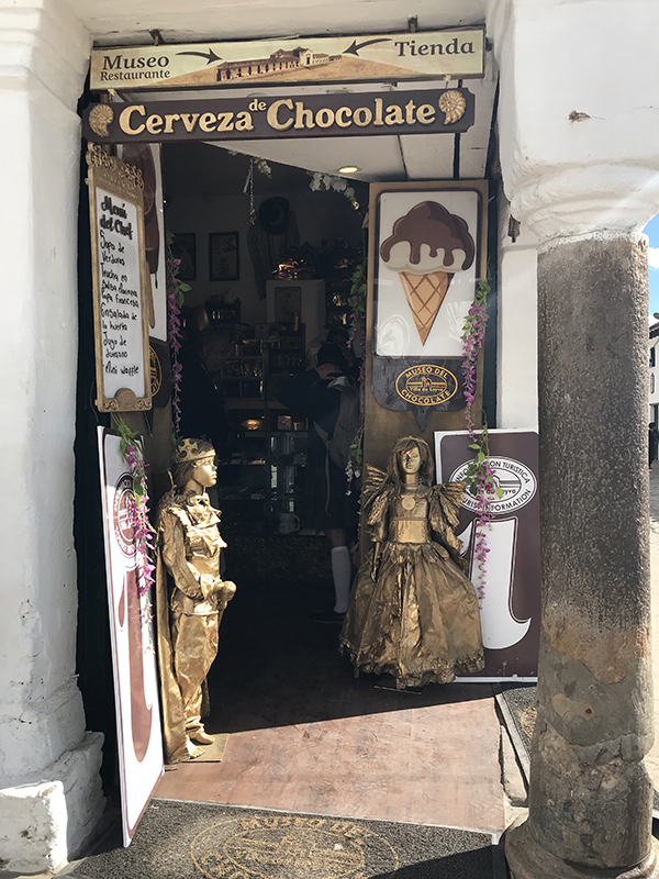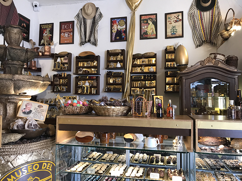 E cuidad colonial pintoresco, Villa de Leyva, cu ta keda pafo di Bogota tin su arkitectura original di 400 aña pasa, cu a conserva su cayanan di piedra. E sensacion lo ta manera cu bo ta tuma un time machine bek den tempo den siglo XVI. Villa de Leyva ta sin duda un destino di compra, cu yen di tienda chikito na rand di e cayanan pintoresco den e pueblo. Sin embargo tin un tienda cu ta resalta den un di e skinanan, Museo del Chocolate, cu bo no por resisti di no keda sin drenta.