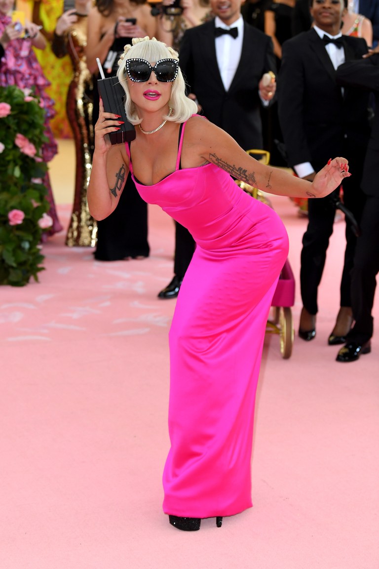 E tema Camp a ser crea pa  Lady Gaga, cu su prome aparicion den un shimis ros estilo parachute pa despues kite pa revela un shimis preto abou. Pero e no a caba eynan! Lady Gaga a cambia pa un shimis di seda ros intenso cu un telefoon gigante den su man, prome cu el a bisti un lingerie chic cu meanan briyante. Tin idea pa pensa di cambia Met Gala pa Met Gaga?