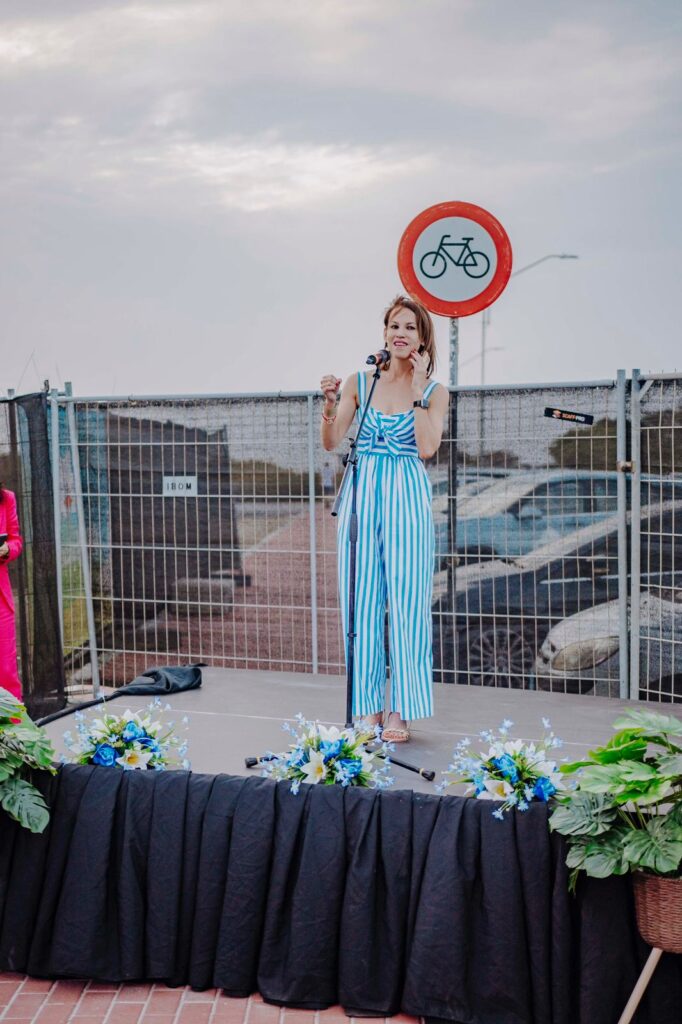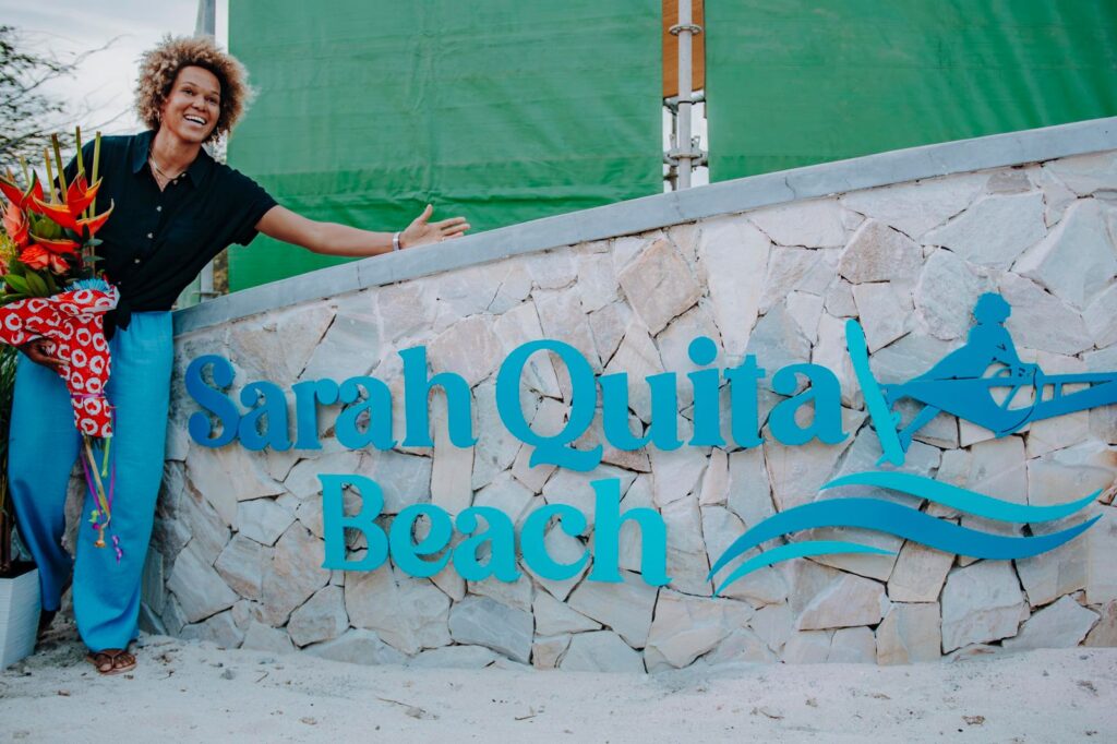 “Y pa nos no lubida di unda nos ta bin y kendenan a contribui pa haci nos isla un marca reconoci mundialmente, awe nos ta celebra apertura oficial di Sarah Quita Beach. Laga e luga aki ta un fuente di inspiracion pa hobennan cu ambicionnan grandi, pa tur cu ta practica e deporte di windsurf y pa cada un ciudadano di e pida baranca aki realisa, cu hopi hende ta inverti sumanan grandi pa bin pasa vakantie y disfruta di e rikesa natural unda nos ta biba. Ban hunto cuid’e, conserv’e y garantisa pa un bon balansa entre desaroyo economico, cuida nos naturalesa, garantisando bienestar general y felicidad di nos hendenan”, asina Ronella Croes a bisa den su discurso.