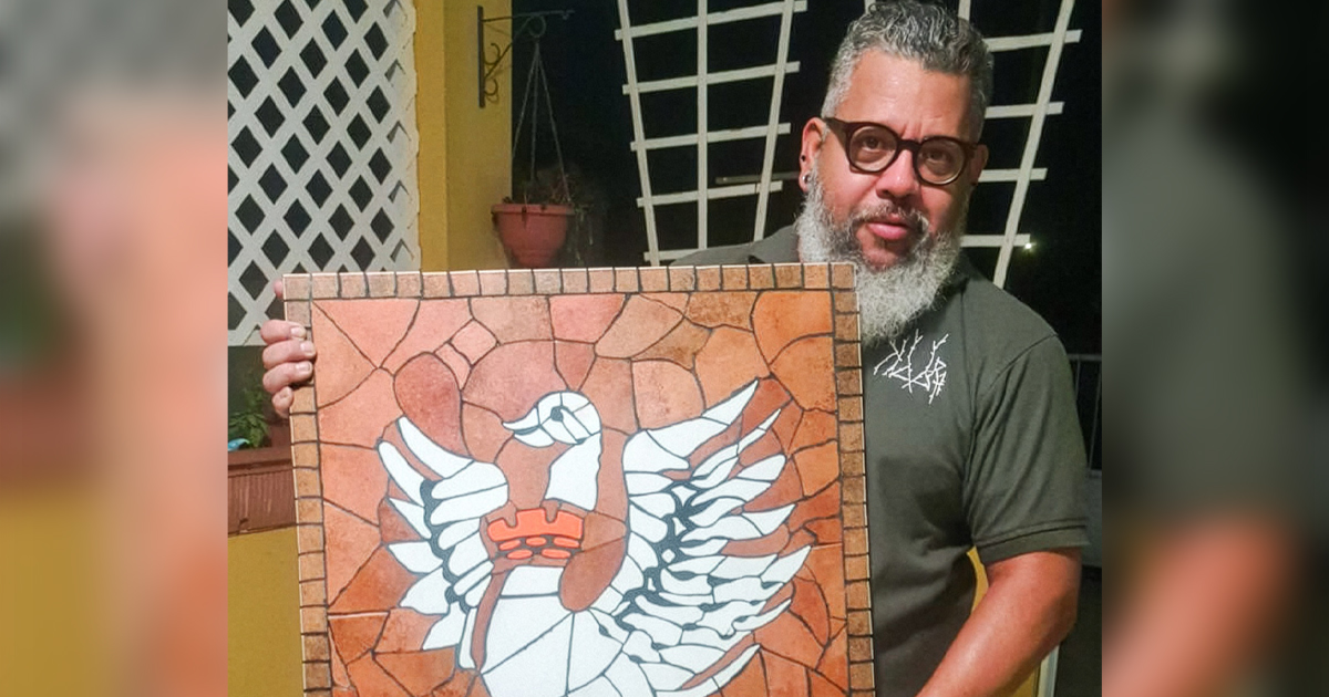 Egbert ta haci un prueba tambe di e combinacion di color y textura pa sigura cu e resultado final ta exactamente con el a imagina. E proceso ta un mescla di planificacion, experimento y pasenshi te cu e obra ta completo. Den Focus Digital Magazine di maart, Egbert Leest ta conta di e temanan hopi emocional cu ta bolbe den su mosaiknan y tocante e historia tras di e mosaik di e Escudo di Zwaan, cu ta representa e tradicion y historia di Famia Ellis di Papiamento Restaurant. E revista ta accesibel gratis via Apple Store, Android Google Play Store y www.focus.aw (Menu Tab FOCUS DIGITAL)